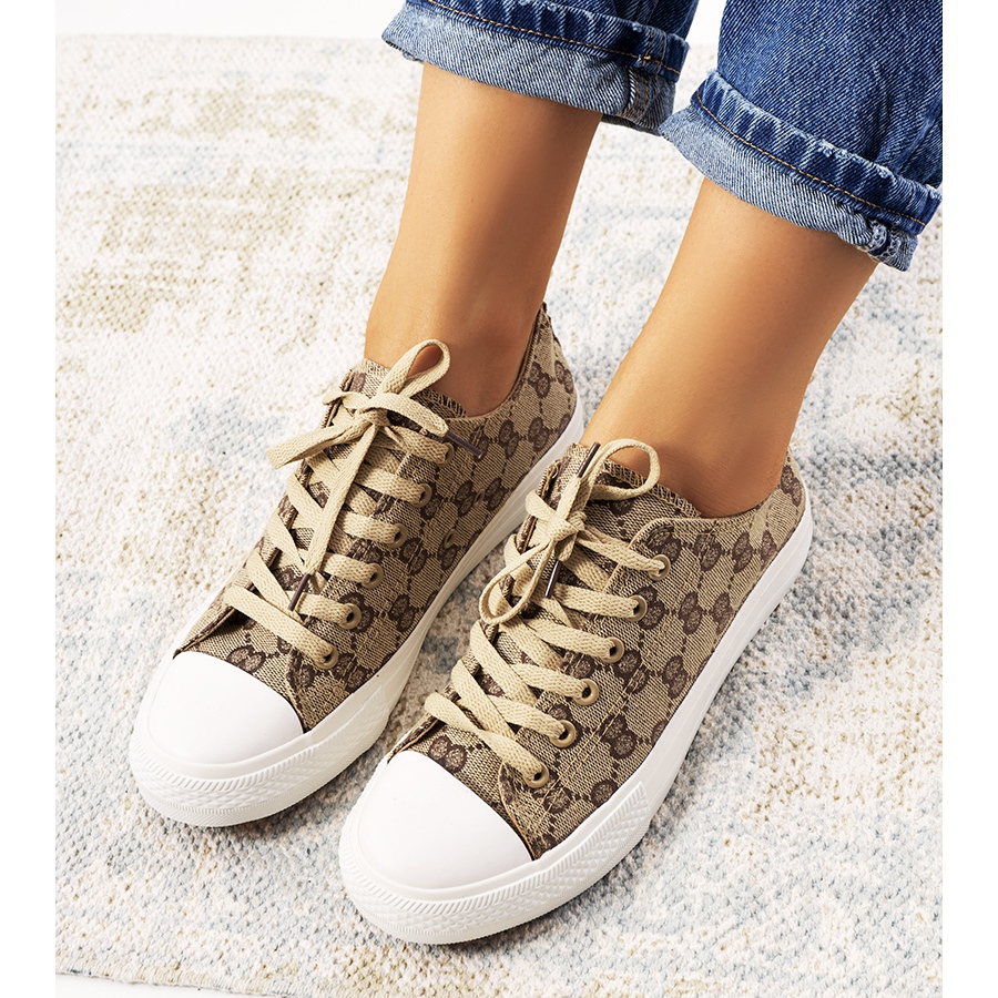 Löydä ainutlaatuinen tyyli Sheilan naisten beigeillä tennareilla! Tässä ajattomassa mallissa yhdistyy alkuperäinen muotoilu ja muodikas luonne, mikä tekee niistä jokaisen vaatekaapin pakollisen osan. Niiden tyylikkäällä kuviolla koristeltu päällinen lisää raikkautta ja ilmekkyyttä, ja beigen ja ruskean värien yhdistelmä tekee niistä sopivan täydellisesti erilaisiin asuihin.