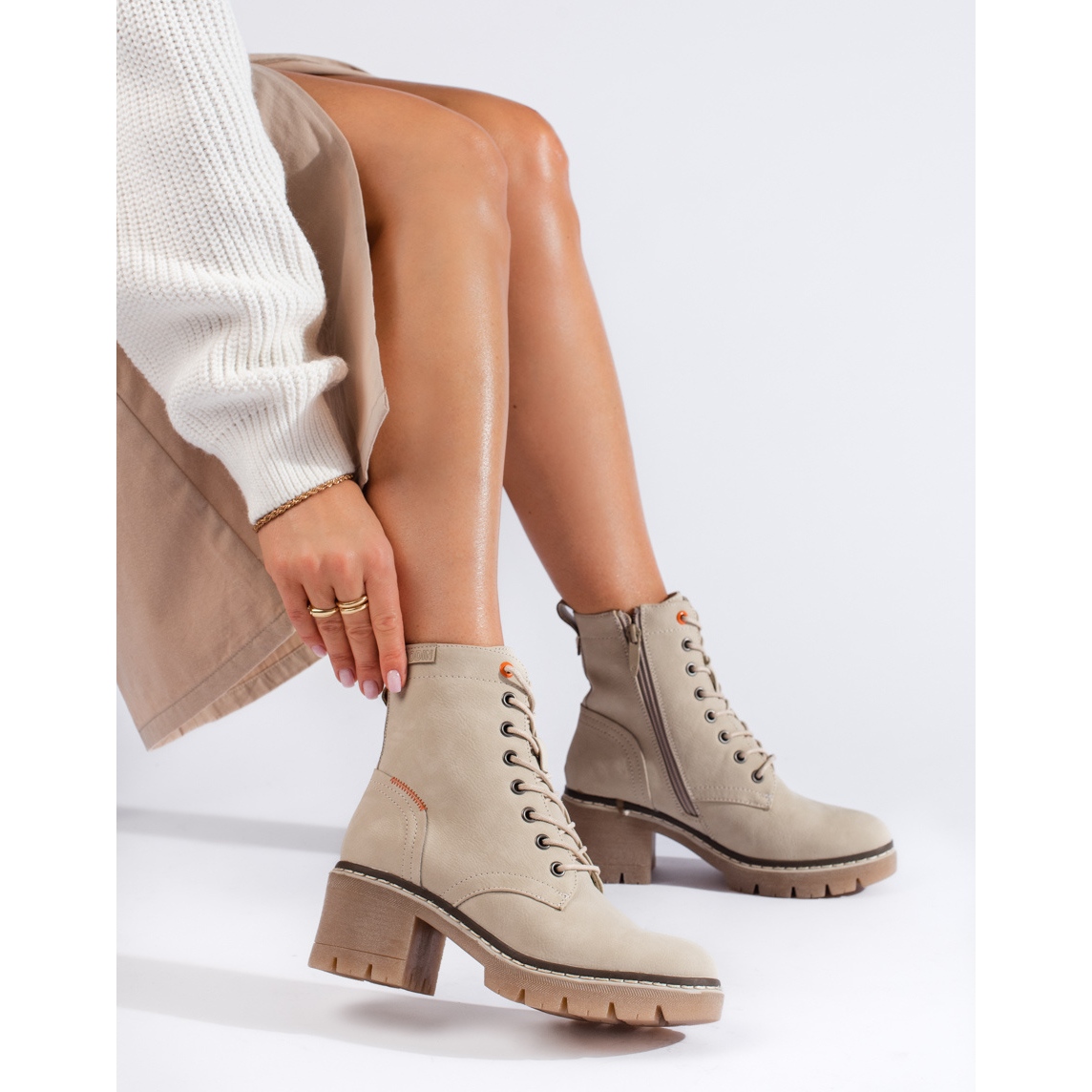 SHELOVET-nauhoitusbeiget mokkanahkanilkkurit leveällä kantapäällä ovat tyylin ja mukavuuden kvintessenssi, jossa yhdistyvät ajaton eleganssi ja rento luonne. Suunniteltu pääasiassa moderneille naisille, jotka haluavat sekä mukavuutta että muodikkaan aksentin syys-talvivaatekaappiinsa.