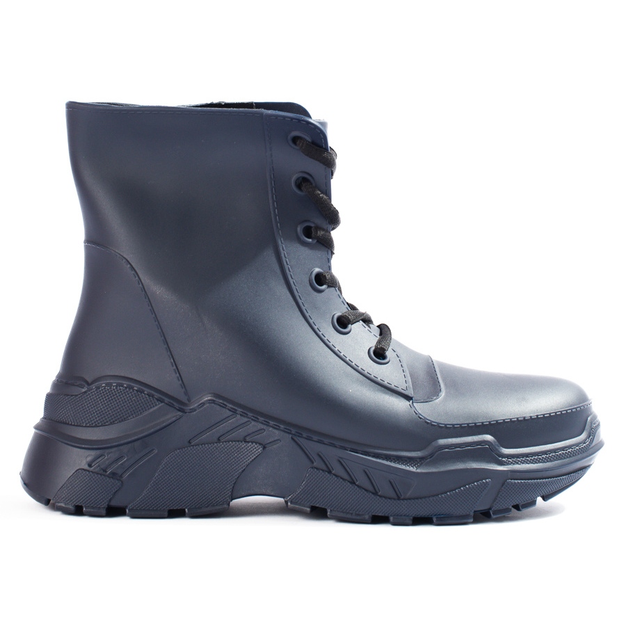 Shelovetin naisten laivastonsiniset nauhalliset sadesaappaat ovat täydellinen ratkaisu sadepäiviin. Valmistettu 100 % kumista, ne antavat erinomaisen suojan kosteutta vastaan ja niiden sisäpuolella oleva tekstiilimateriaali takaa käyttömukavuuden. Mallille on ominaista sisäänrakennettu, pehmeä kantapää, joka mukautuu täydellisesti jalkaan ja tekee kumpaista erittäin mukavat.