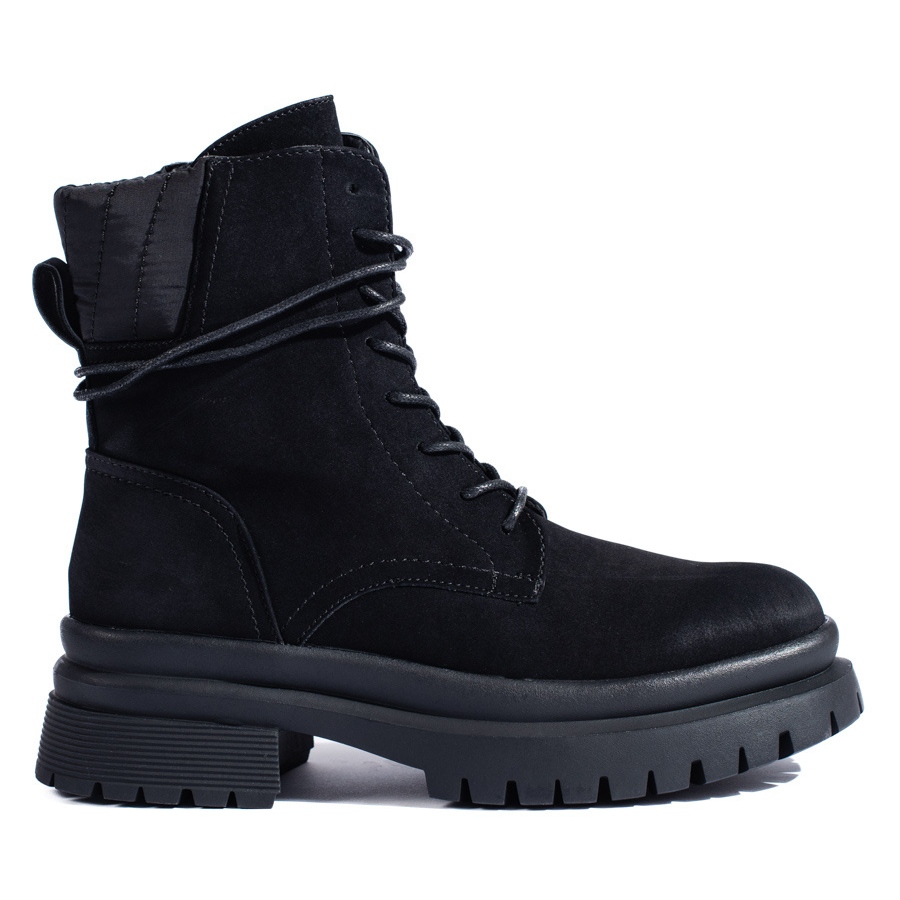 Tyylikkät, mustat työntekijät Shelvetistä yhdistävät muodikkaan ilmeen käytännöllisiin ratkaisuihin. Valmistettu ekologisesta mokkanahasta, kevyelle, pintaan pohjalle, ne ovat hienoja sekä kaupunkien tyylissä että jokapäiväisessä käytössä.