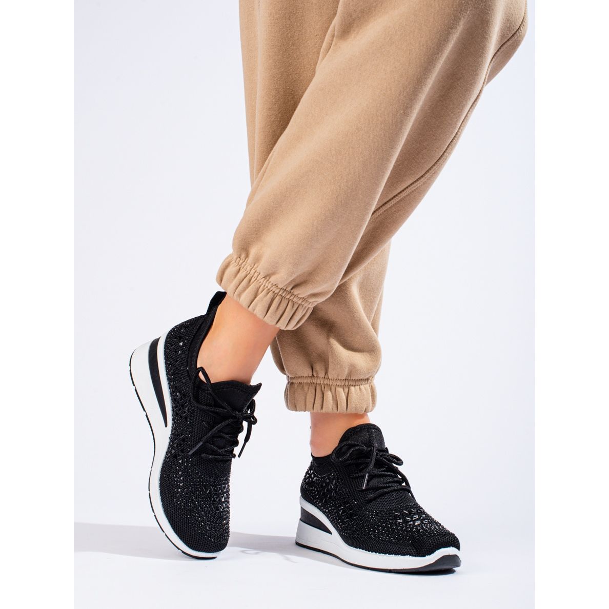 Löydä tyylikkäät ja mukavat tekstiilikiilalenkkarit Shelovet-brändiltä. Tämä malli, joka on saatavana elegantissa mustassa värissä, on täydellinen valinta naisille, jotka haluavat yhdistää urheilullisen mukavuuden muodikkaan lookin. Valmistettu 100 % korkealaatuisista tekstiilimateriaaleista, ne tarjoavat erinomaisen ilmanvaihdon ja mukavuuden koko päivän.