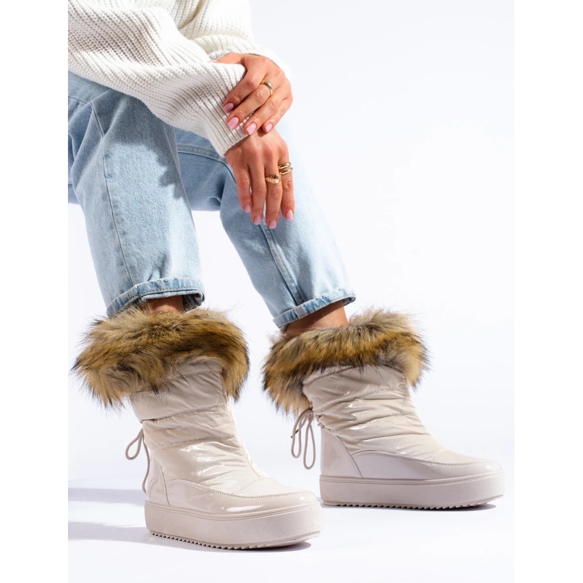 SHELOVET Shelovet naisten kermanväriset lumisaappaat turkisella kultainen