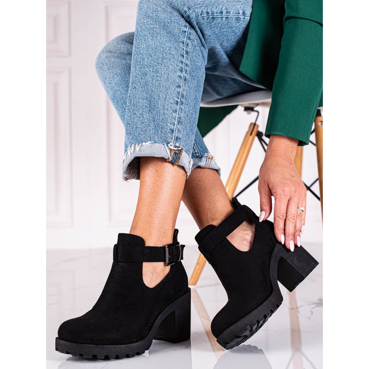 Naisten Shelovet-nilkkurit klassisen mustan värisenä ovat täydellinen tarjous syys/talvikaudelle, ja niissä yhdistyvät rento ja rock-tyyli. Nämä kengät on valmistettu korkealaatuisesta mokkanahasta, joten ne eivät vain näytä upeilta, vaan tarjoavat myös mukavuutta jokapäiväiseen käyttöön.