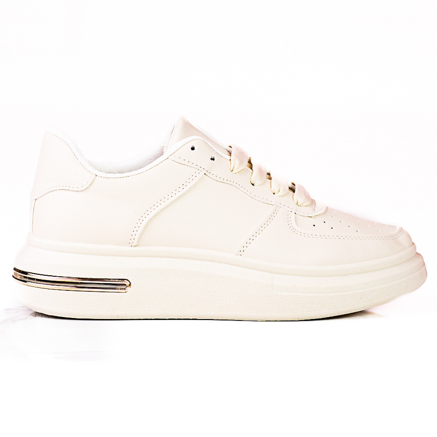 Shelovet valkoiset nauhalliset urheilukengät ekologisesta nahasta, beige