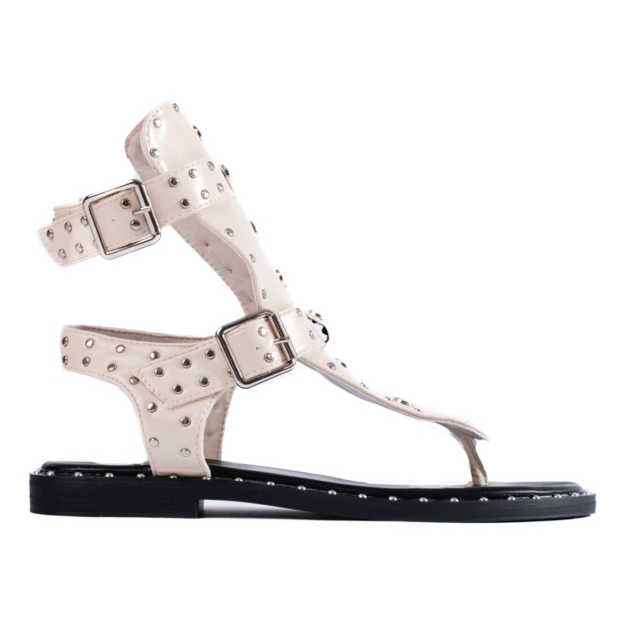 Shelovet esittelee hienon yhdistelmän mukavuutta ja tyyliä modernille naiselle beigeinä gladiaattorivarvastossuina, joita on rikastettu strassien hienovaraisella hehkulla. Nämä ovat jalkineita, jotka sopivat täydellisesti kesätyyliin ja antavat niille rennon luonteen ripauksella eleganssia.