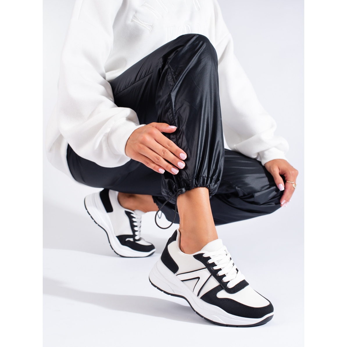 Nauhoituskiinnitys mahdollistaa täydellisen istuvuuden jalkaan, mikä lisää käyttömukavuutta. Sisävuori on valmistettu kankaasta, joka tarjoaa lisää pehmeyttä ja mukavuutta pitkän käytön aikana. Shelovet-kenkiä on saatavilla muodikkaissa väreissä - valkoisen ja mustan yhdistelmä, jonka ansiosta ne sopivat täydellisesti moneen arki- ja urheilutyyliin.