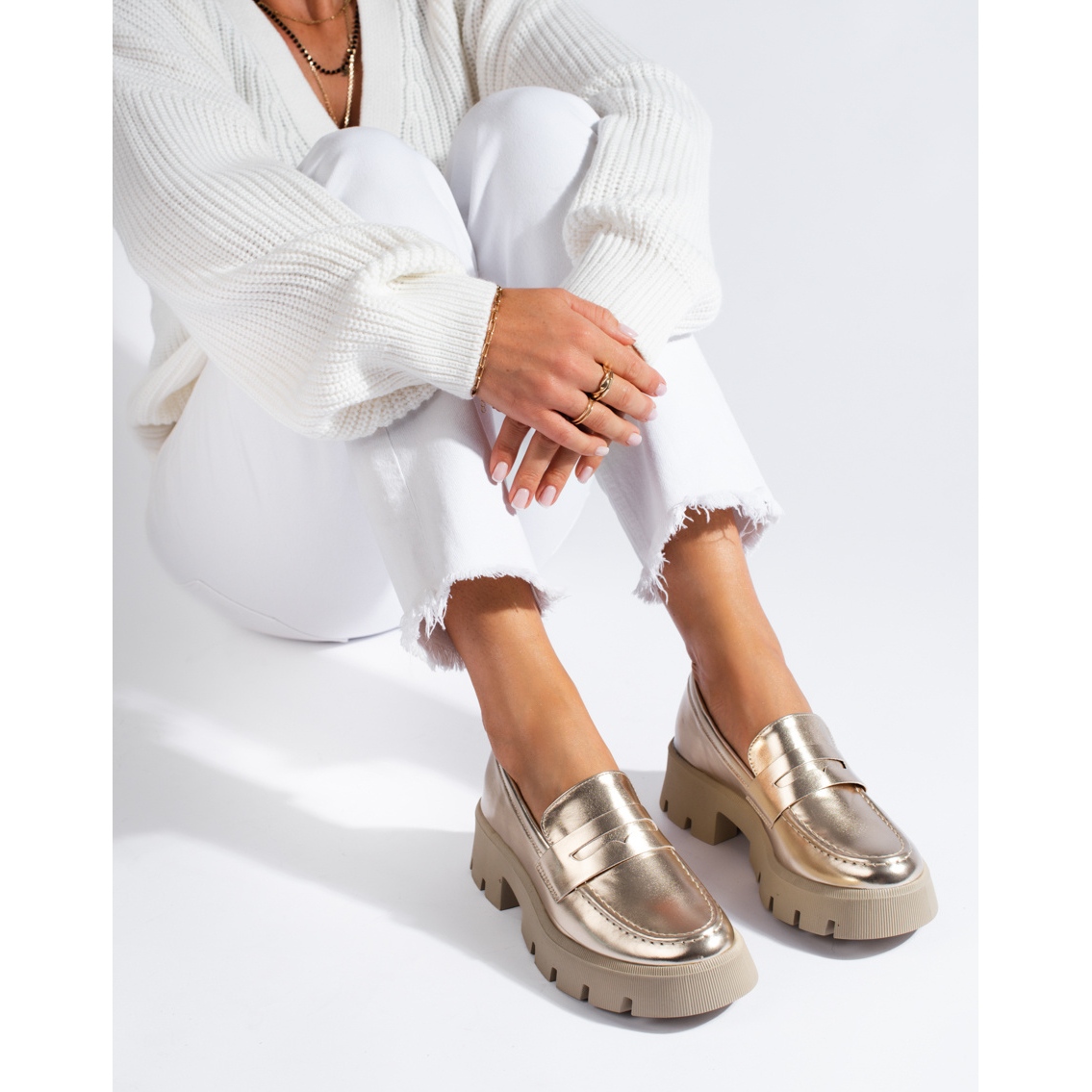 SHELOVET Shelovetin kullanväriset naisten mokasiinit paksulla pohjalla kultainen