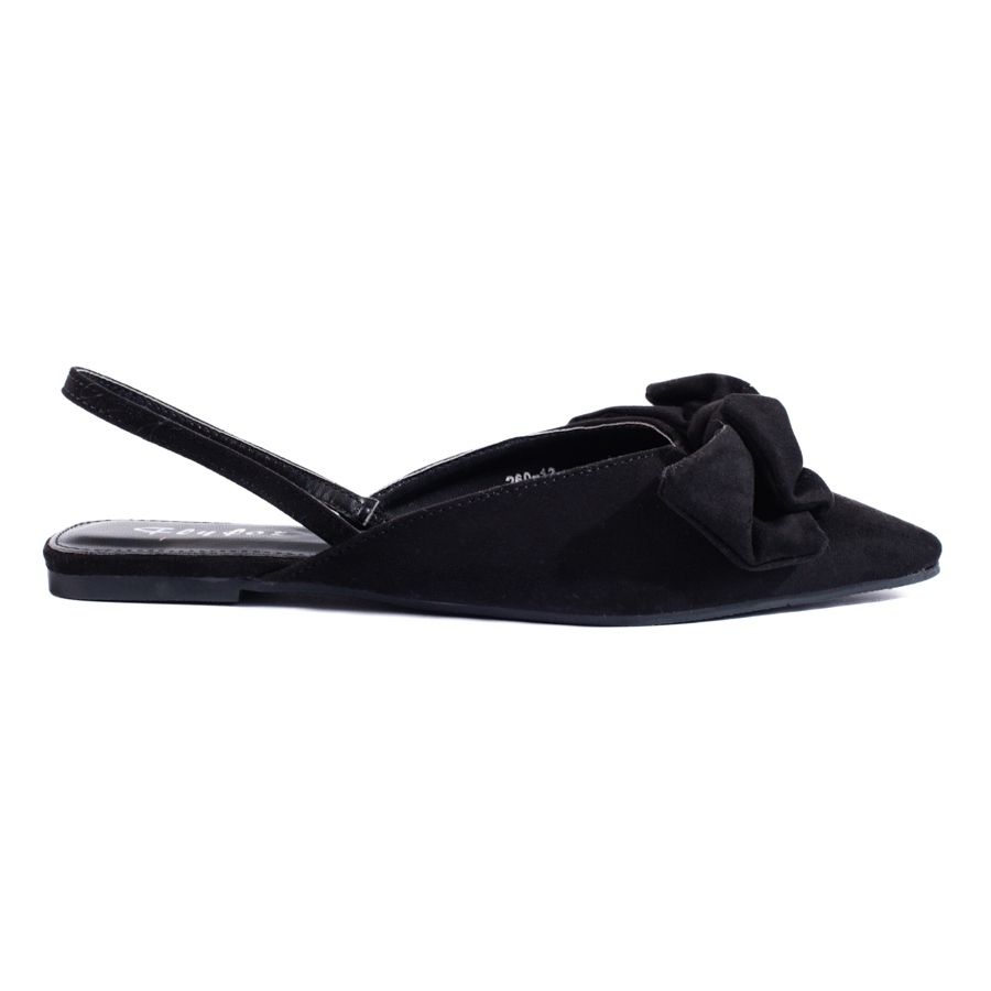 - Malli: Suede mustat ballerinat rusetilla