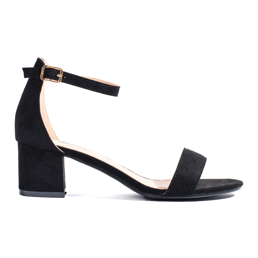SHELOVET Shelovetin mustat mokkanahkaiset matalakorkoiset sandaalit