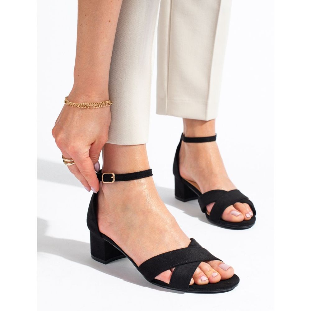 SHELOVET Shelovetin mustat tyylikkäät mokkanahkaiset matalakorkoiset sandaalit
