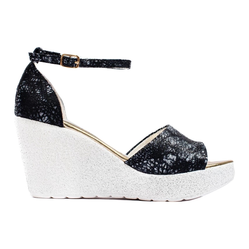 Tyylikkäät Shelvet -kiilan sandaalit ovat ehdotus, jossa yhdistyvät klassikot moderniin muotoiluun. Tyylikäs mustavalkoinen kuvio saa kengät toimimaan hyvin päivittäin että iltamatkaan tai juhliin.