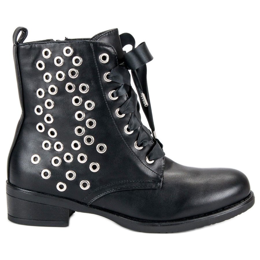 Sidotut mustat työntekijöiden saappaat täydentävät täydellisesti sekä rentoa että ilmeikkäämpää tyyliä. Voit käyttää niitä farkkujen, hameiden tai mekkojen kanssa - ne lisäävät hieman reunaa ja tyyliä kaikkialle.