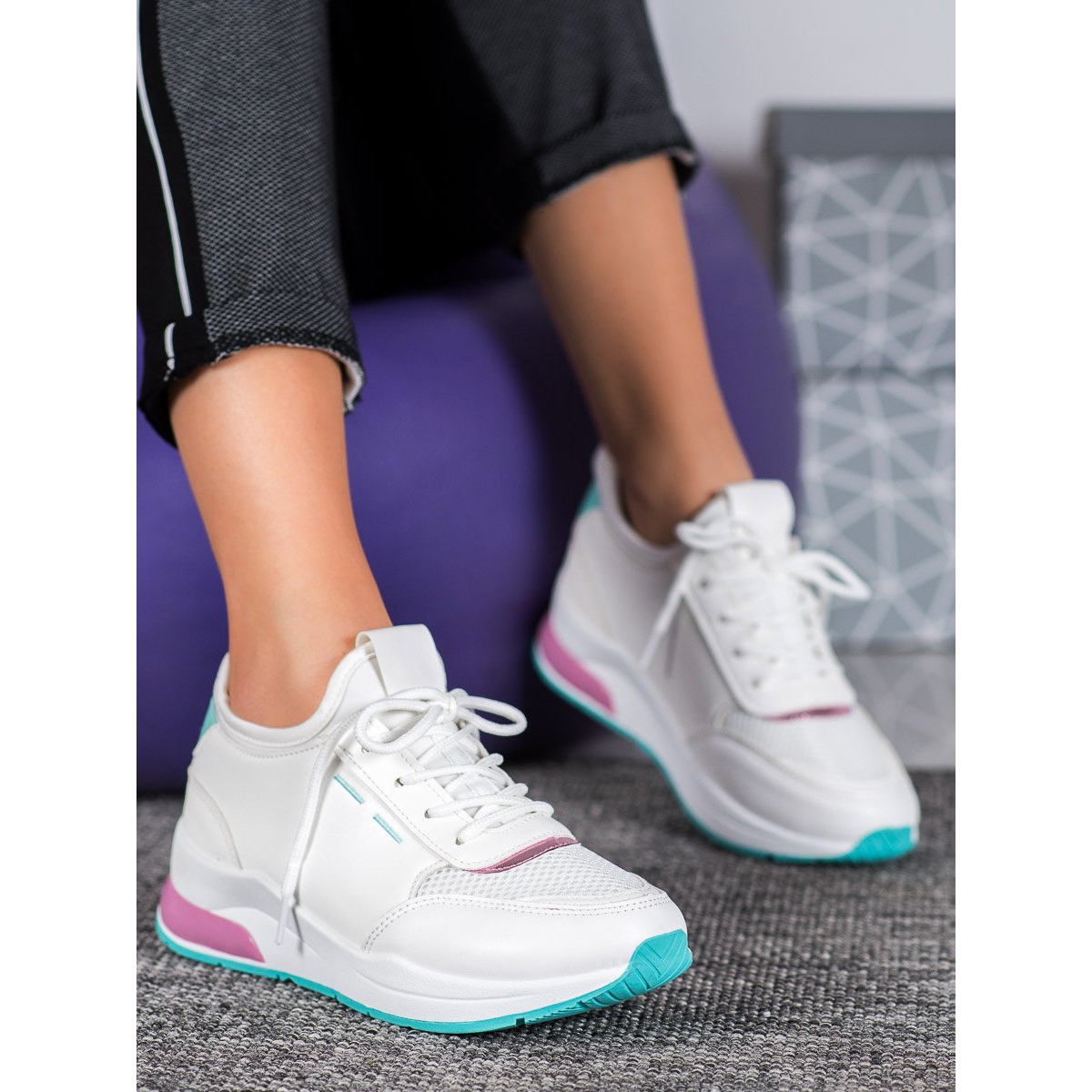 Tutustu valkoisiin SHELOVET-urheilukenkiin, jotka erottuvat paitsi elegantista muotoilustaan, myös alkuperäisistä värikkäistä aksenteista, jotka lisäävät niihin luonnetta. Nämä kengät sopivat täydellisesti naisille, jotka haluavat korostaa ainutlaatuista tyyliään. Nämä kengät yhdistävät mukavuuden ja muodin, mikä tekee jokapäiväisestä tyylistä raikkaan.
