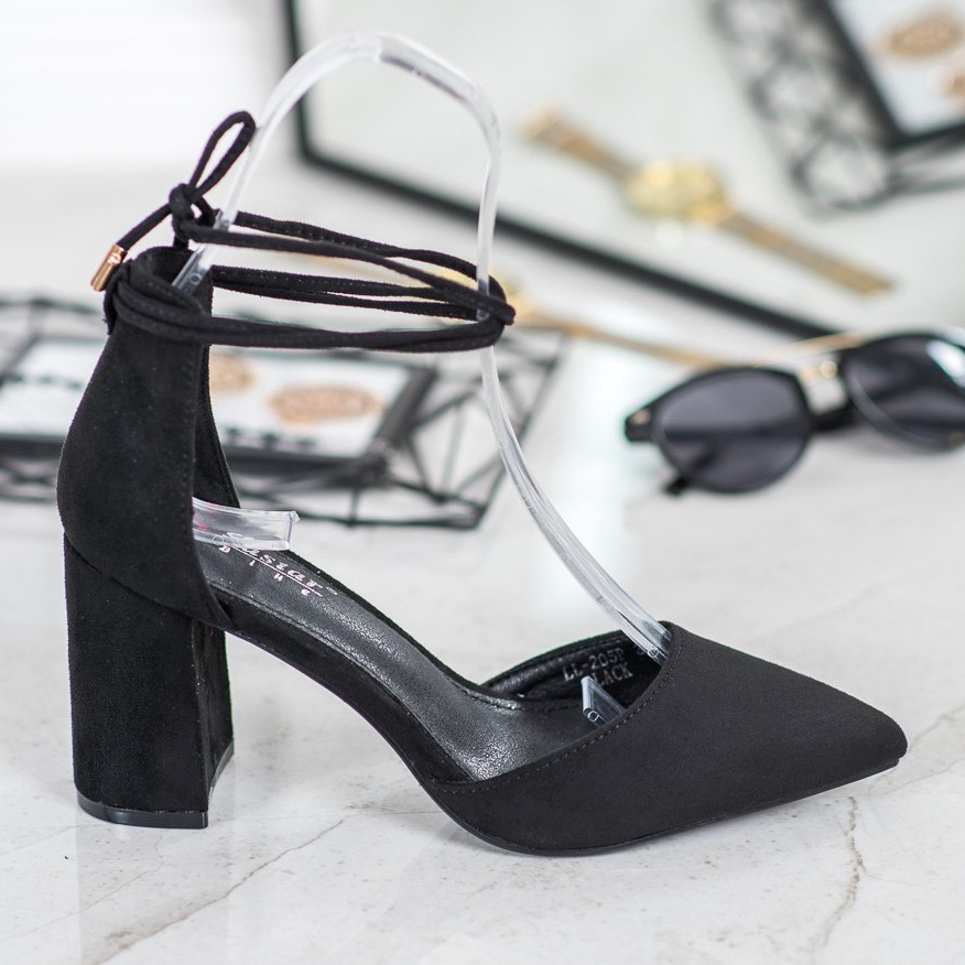 Esittelemme Seastar-brändin mustat pumput, jotka ovat täydellinen valinta jokaiselle tyylikkäälle naiselle. Nämä klassiset nauhakengät on valmistettu korkealaatuisesta ekologisesta mokkanahkasta, joka takaa tyylikkään ulkonäön ja käyttömukavuuden. Mantelin nenä kätkee ripaus eleganssia, joka sopii erinomaisesti erilaisiin tilaisuuksiin - seremonioista iltaretkiin ja juhliin.