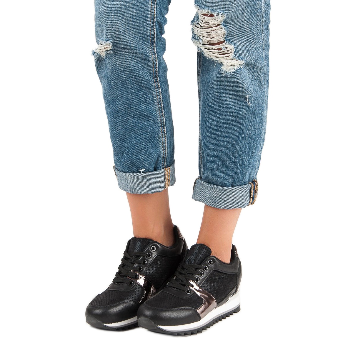 Nämä kevyet urheilukengät ovat täydelliset paitsi jokapäiväiseen käyttöön, myös tyylikkääksi elementiksi urheiluvaatekaappiisi. Metalliset lisäosat antavat niille ainutlaatuisen ilmeen, mikä tekee niistä mielenkiintoisen korostuksen kaikissa tyyliissä. Riippumatta siitä, oletko menossa kävelylle, töihin tai yliopistoon – nämä mustat kengät ovat täydellinen lisä vaatekaappiisi. Valitse mukavuus ja tyyli BUTYMODNE-mallistosta!