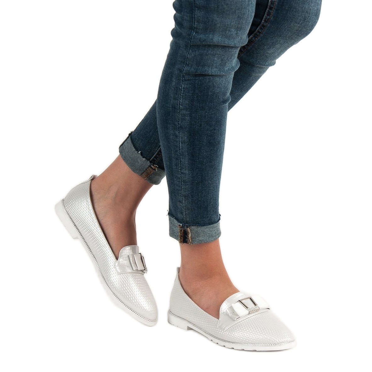 Tutustu ainutlaatuisiin naisten lordiihin Ch. Hopeanvärinen luomus, joka ilahduttaa jokaista muodikkaiden asusteiden ystävää! Nämä tyylikkäät kengät sopivat täydellisesti jokapäiväiseen tyyliin ja lisäävät niihin ainutlaatuista luonnetta. Niiden ainutlaatuinen muotoilu herättää huomion, ja hopeiset koristeet ja materiaalin mielenkiintoinen rakenne erottavat tämän mallin muista.