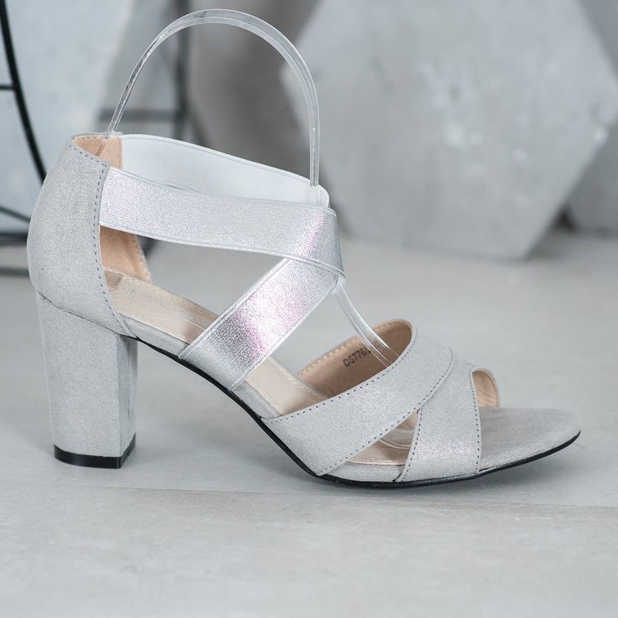 Nahkaa jäljittelevästä hopeamateriaalista valmistetut sandaalit ilahduttavat hienovaraisella kiillollaan. Kengän etuosa on koristeltu kahdella ristikkäisellä materiaalikaistaleella, jotka paljastavat jalat tyylikkäästi. Lisäksi ranteessa on koristeellinen kuvio kiiltävästä materiaalista, joka korostaa niiden ainutlaatuista luonnetta.