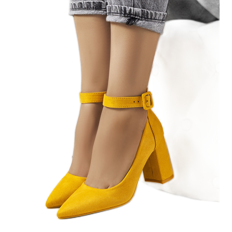 Pumppuja on saatavilla kooissa 36-41, mikä tarkoittaa, että jokainen nainen löytää itselleen sopivan parin. Pohjan väri, myös keltaisen sävyinen, herättää huomion ja korostaa mallin ainutlaatuista luonnetta. Muovista valmistettu pohjamateriaali takaa kestävyyden ja mukavuuden ja nahkainen pohjallinen riittävän ilmankierron.