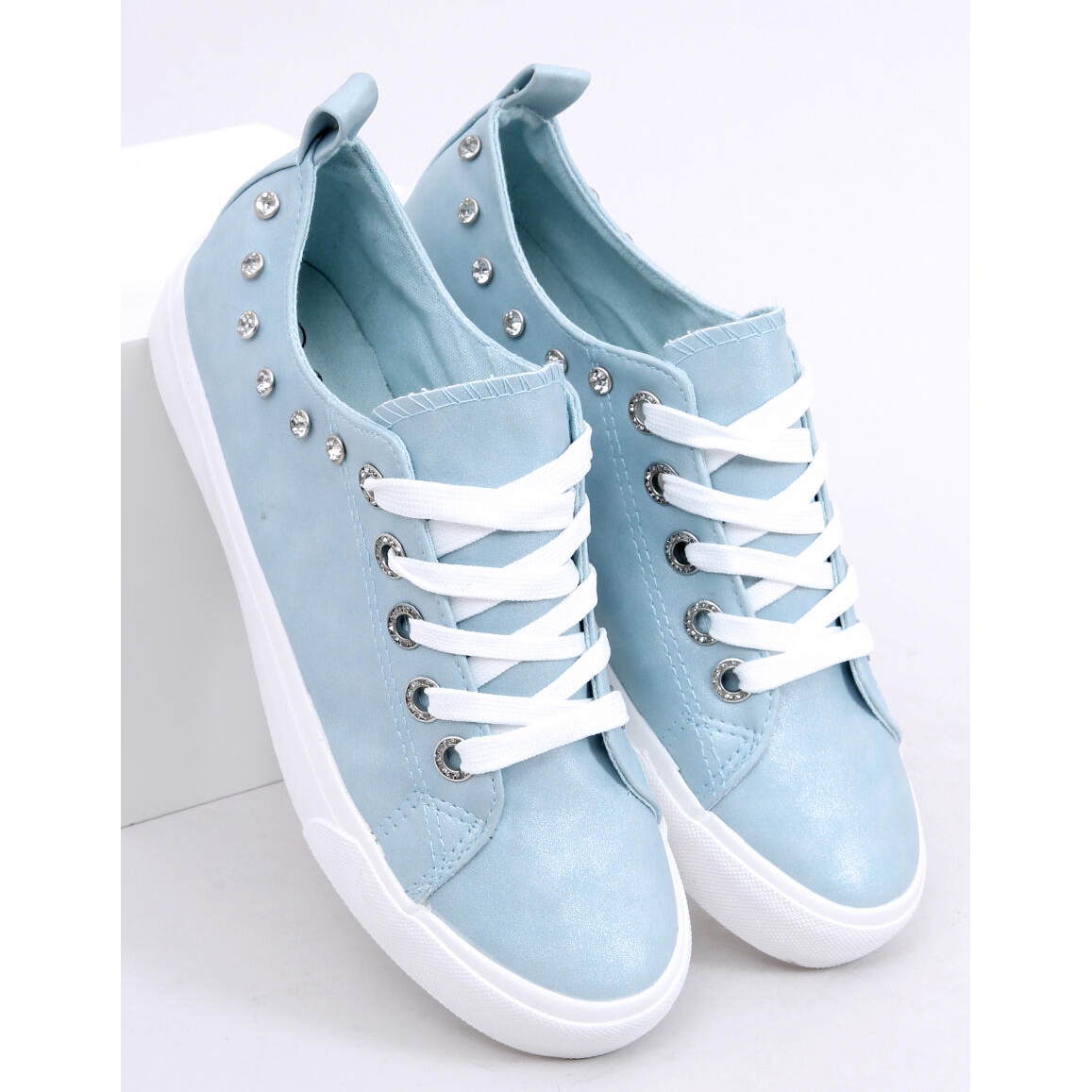 BL122p Blue lenkkarit zirkoneilla ovat täydellinen valinta naisille, jotka haluavat erottua jokapäiväisessä tyylissään. Nämä klassiset lenkkarit ovat saaneet uuden elämän vaikuttavien yksityiskohtien ansiosta - huolellisesti sijoitetut strassit, jotka koristavat paitsi päällisen, myös silmukoita, lisäten kenkiin ainutlaatuista kiiltoa.