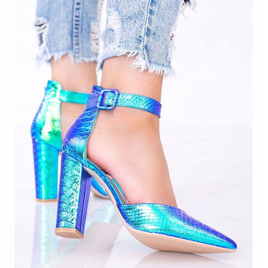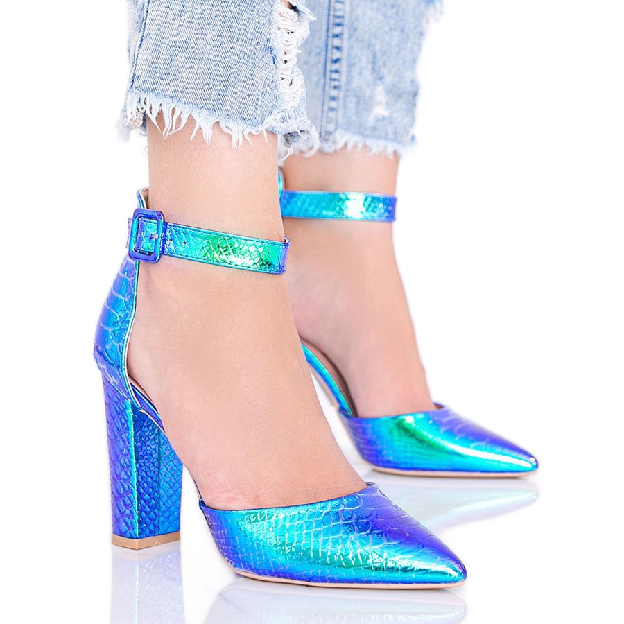 Ashley-pumput ovat todella välttämätön jokaisen naisen vaatekaappi! Esittelemme ilmiömäisiä sinisiä holografisia korkokenkiä, jotka ilahduttavat modernilla muotoilullaan. Nilkan ympärillä olevan hihnan ansiosta ne eivät vain istu hyvin jalkaan, vaan myös lisäävät tyylikkyyttä mihin tahansa tyyliin.