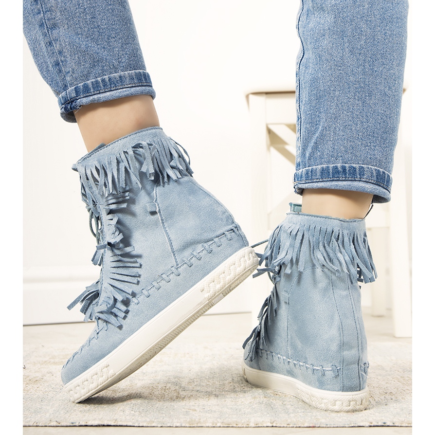 Tutustu boho-tyyliin sinisillä Dias wedge -lenkkarilla! Näissä ainutlaatuisissa saappaissa yhdistyvät muodikas muotoilu ja mukavuus, joita arvostat joka päivä. Valmistettu korkealaatuisesta ekologisesta mokkanahasta viehättävässä sinisessä sävyssä, ja ne vastaavat täydellisesti viimeisimpiä jalkinetrendejä.