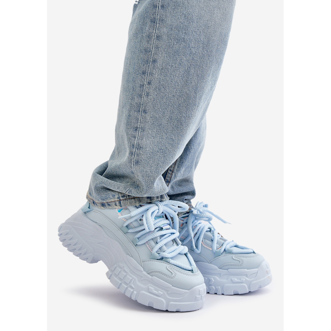 Yksityiskohdat: Siniset naisten tennarit massiivisessa pohjassa Nevela sininen