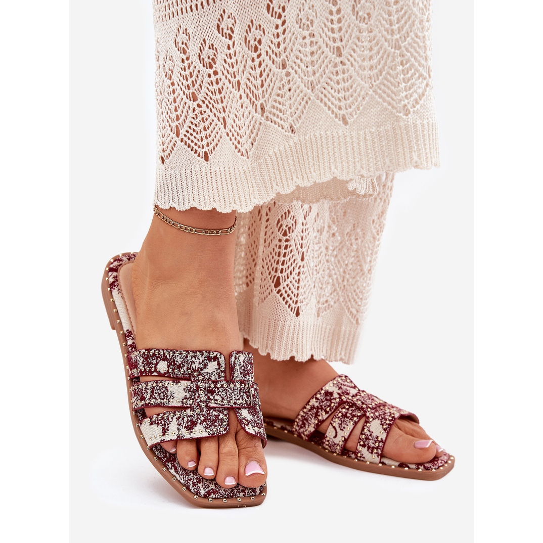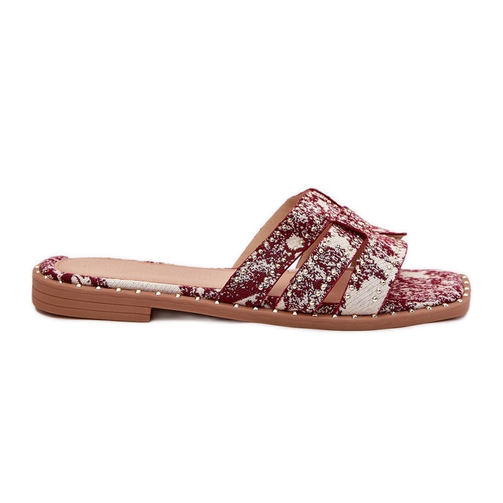 Tutustu ainutlaatuiseen tyyliin ja mukavuuteen, joka on kulunut koristeltujen litteiden läpiläiden ansiosta mehukkaan viininpunaisessa väreissä. Nämä tyylikkäät naisten läppä tehtiin korkealaatuisesta tekstiilimateriaalista, mikä varmistaa keveyden ja hengittävyyden, jotka ovat ihanteellisia lämpimiin päiviin. Syötävät 1,5 cm: n korkokengät, ne ovat täydellisiä kaikkien päiväpäivän toimintaan, jotka takaavat mukavuuden useita tunteja.