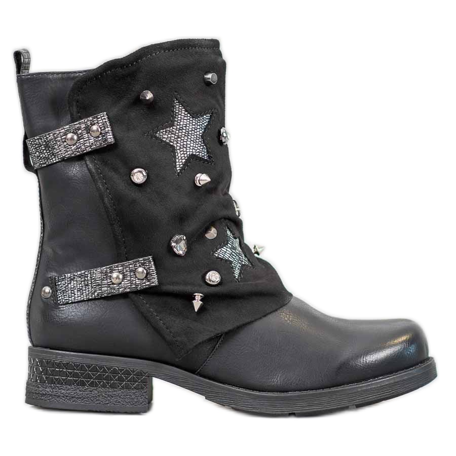 Yksityiskohtiin kohdistettaessa on mahdotonta sivuuttaa hopeisia strasseja ja tähden muotoisia kuvioita. Ne muodostavat ainutlaatuisen aksentin tuoden ilmeellesi rock-henkeä ja lisäämällä eleganssia. 3,5 cm litteä kantapää on huomaamaton ja mukava käyttää koko päivän.