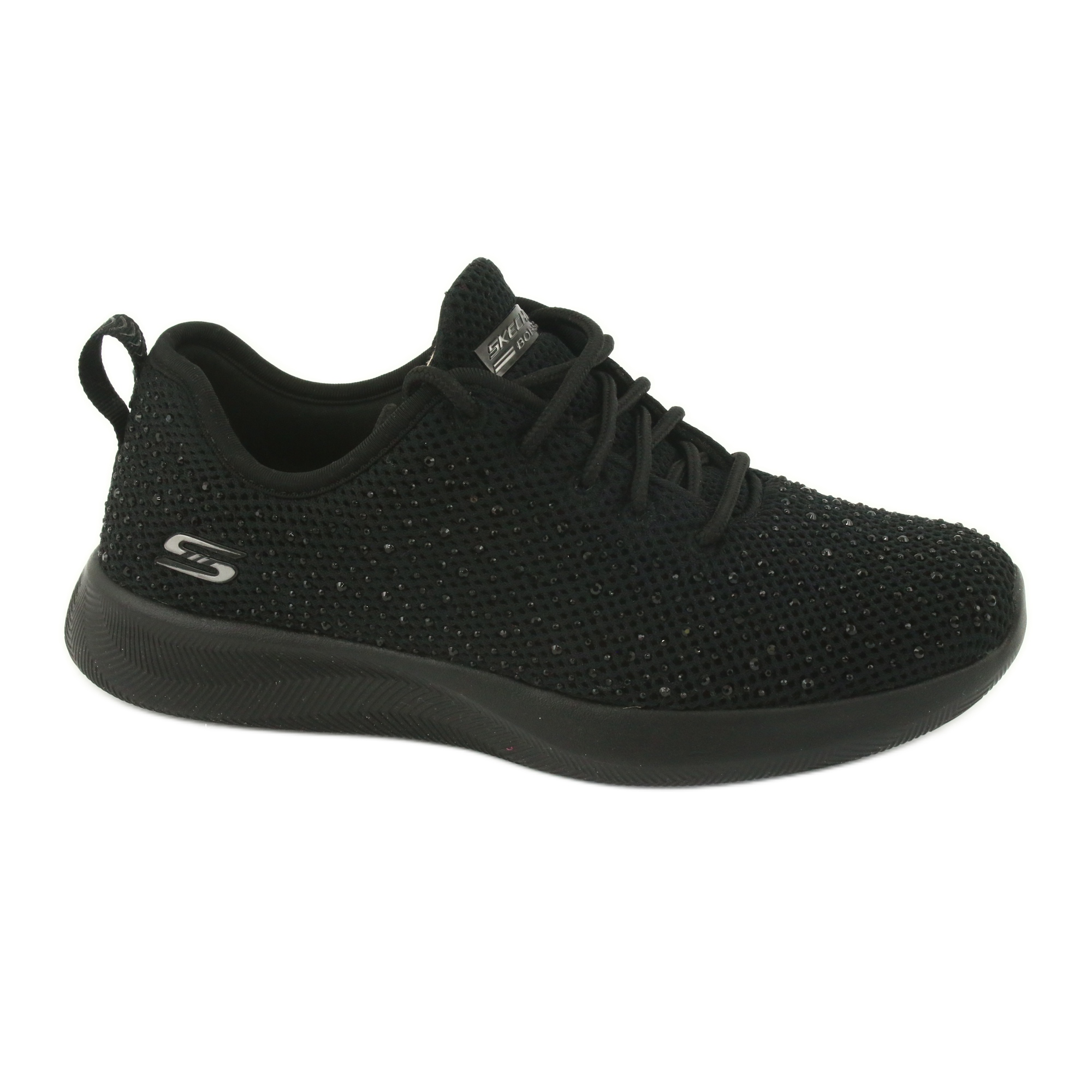 Esittelyssä Skechers Bobs Squad-Galaxy Chaser W 32805-BBK kengät tyylikkäässä mustassa värissä, joissa yhdistyvät tyyli, mukavuus ja urheilullisuus. Nämä matalat naisten kengät sopivat täydellisesti sekä arkeen että aktiivisille matkoille.