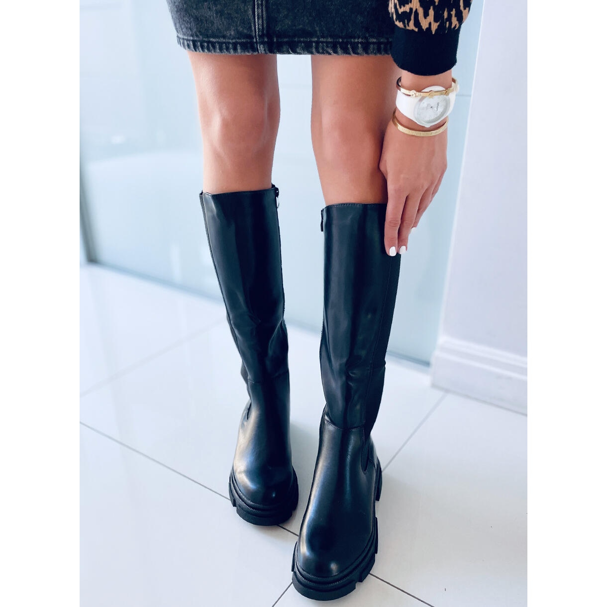 Skylar Black Women's Boots - mustat saappaat paksulla pohjalla, joka yhdistää armeijan hahmon päivittäiseen mukavuuteen. Joustavalla insertillä leikattu minimalisti muistuttaa Jodhpur -saappaita, ja yläosassa oleva koko pituinen vetoketju varmistaa nopean ja mukavan laittamisen. Ekologisesta nahasta valmistettu sisustus on pehmustettu pehmeällä turkisilla - täydellinen viileämpiin päiviin.