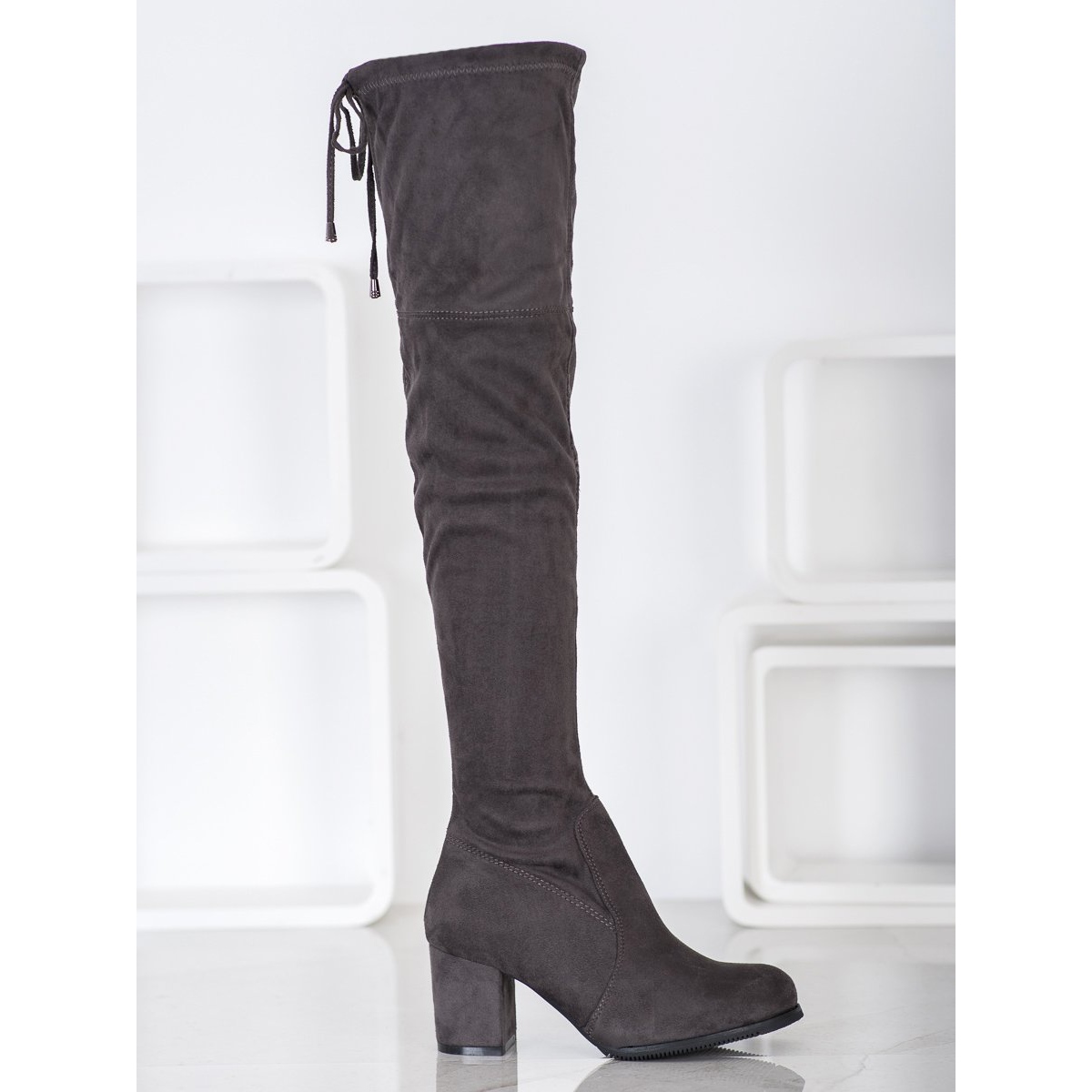 Polven yläpuolelle ulottuva korkea päällinen suojaa täydellisesti kylmältä ja kosteudelta, ja kiinteä 7 cm korkea kantapää takaa käyttömukavuuden myös pidemmillä kävelylenkeillä. Pyöreän kärjen ansiosta kengät eivät ole vain muodikkaat, vaan myös mukavat, joten ne sopivat täydellisesti erilaisiin tilaisuuksiin, mukaan lukien illanviettoon tai juhliin.