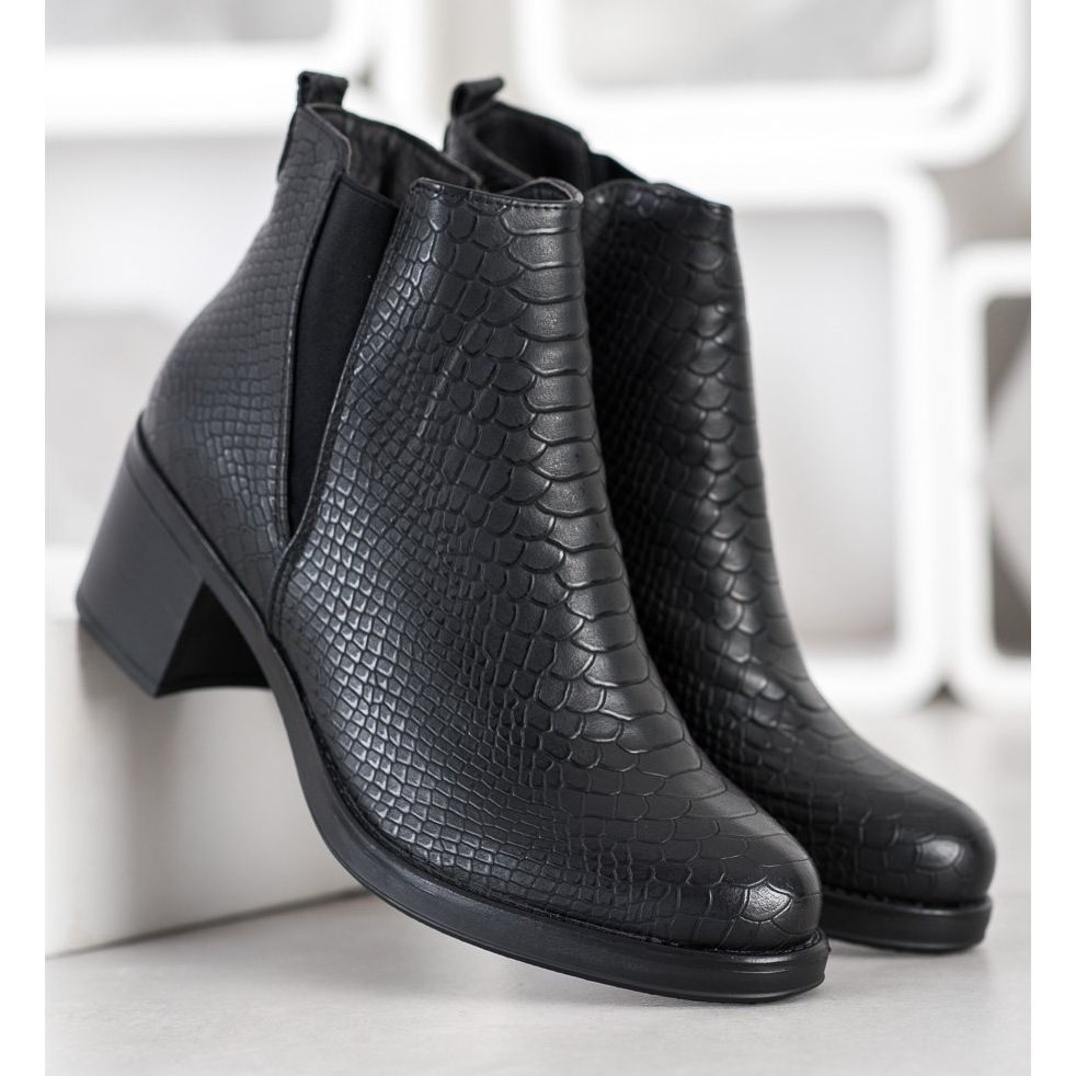 Näiden saappaiden ainutlaatuinen ominaisuus on niiden eläinkuvio, jonka ansiosta ne erottuvat perinteisistä malleista. Kengän sisäpuoli on valmistettu 50 % ekologisesta nahasta ja 50 % tekstiilimateriaalista, mikä takaa käyttömukavuuden. Black Sweet Shoes -nilkkurit ovat monipuolinen vaate, jota jokainen moderni nainen rakastaa.