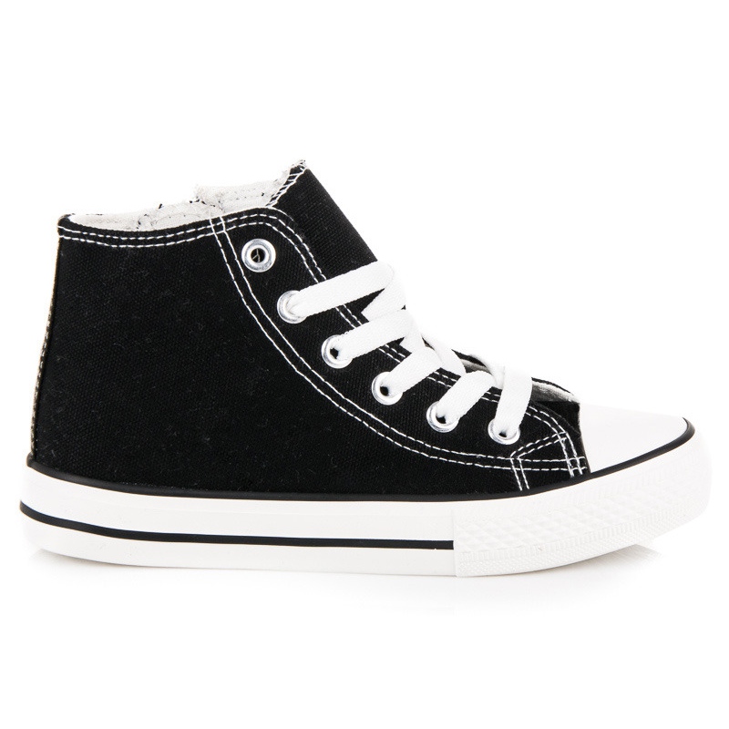 Klassiset, universaalit korkeat lenkkarit mustana - täydelliset pojille ja tytöille. Yhdistelmä mukavuutta ja käytännöllisyyttä: korkea leikkaus varmistaa vakauden, ja vetoketju helpottaa pukemista nopeasti. Nauhojen avulla voit säätää kengän jalkaan sopivaksi, ja jäykkä kantataskuri parantaa vakautta leikin aikana.