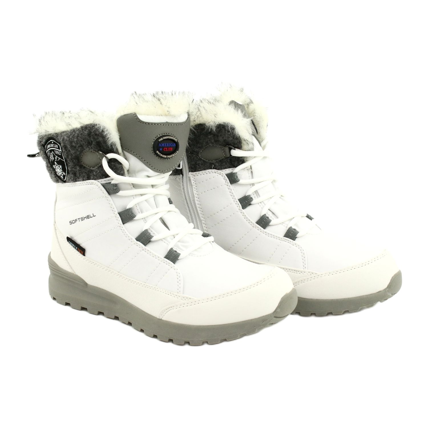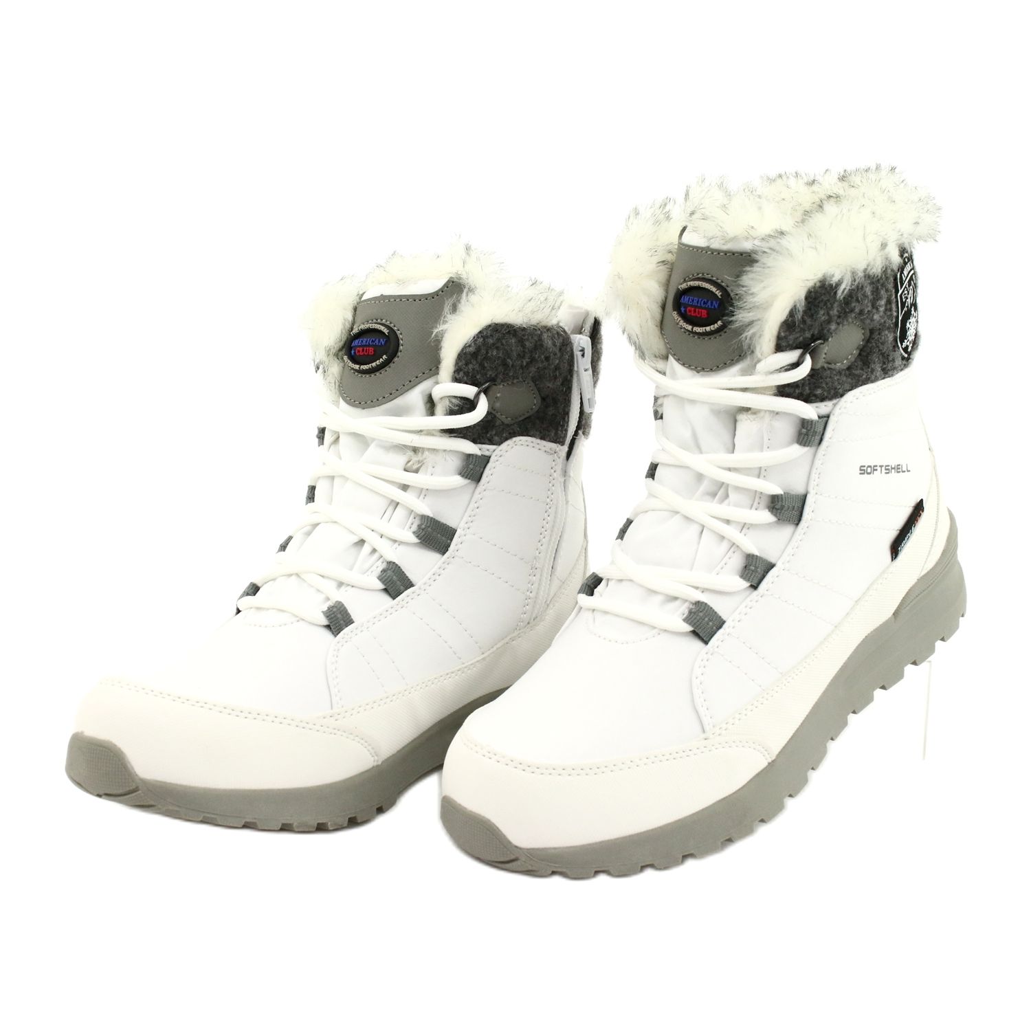 American Club Softshell -lumisaappaat, joissa American Club SN26 / 20 -kalvo valkoinen harmaa
