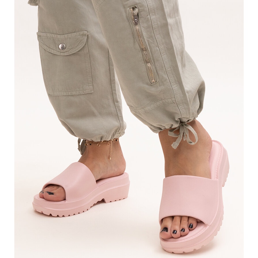 Yksityiskohdat: Soizan vaaleanpunaiset varvastossut paksulla pohjalla vaaleanpunainen