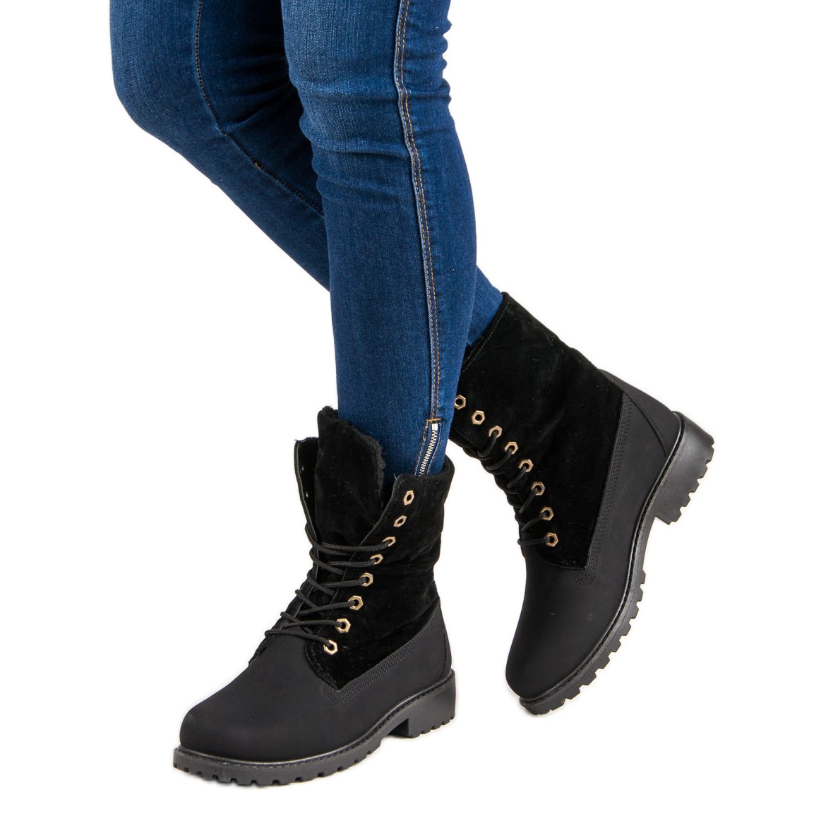 Mustat nauhalliset eristetyt työsaappaat ovat täydellinen valinta naisille, jotka haluavat yhdistää tyylin mukavuuteen. Nämä muodikkaat kengät, jotka ulottuvat nilkan yläpuolelle, ovat täydellinen ratkaisu kylmempiin päiviin lämpöä ja mukavuutta takaavan eristyksensä ansiosta. Ekologisesta mokkasta ja nahasta valmistetut työntekijät ovat ympäristöystävällisiä ja heidän hoitonsa on helppoa.