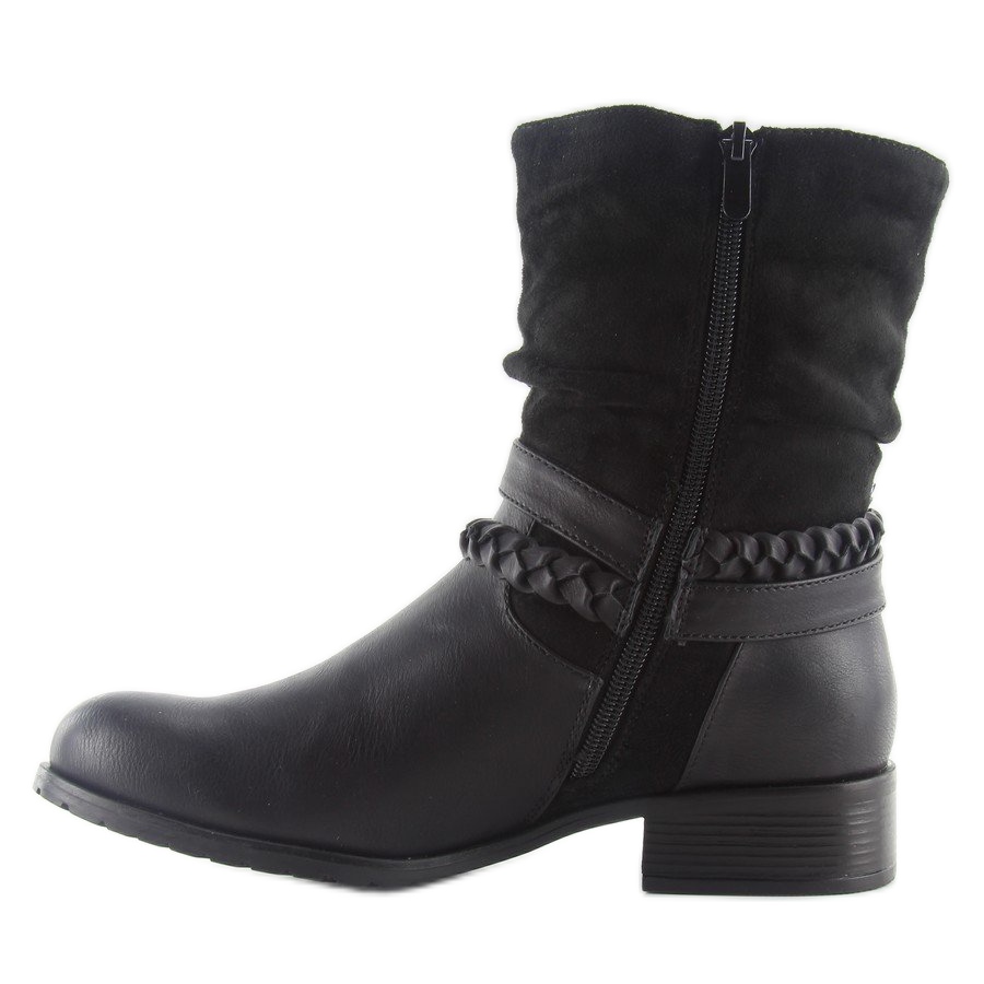Sotilaatyyliset saappaat 632-pa mustat ovat täydellinen valinta naisille, jotka haluavat yhdistää mukavuuden muodikkaan ilmeen. Niille on ominaista yksinkertainen päällinen, joka on koristeltu tyylikkäillä soljella varustetuilla hihnoilla, mikä antaa niille ainutlaatuisen, tyypillisen ilmeen. Nämä saappaat on valmistettu täysjyväisen eko-nahan ja mokkanahkan yhdistelmästä, joten ne eivät ole vain esteettisiä, vaan myös toimivia.