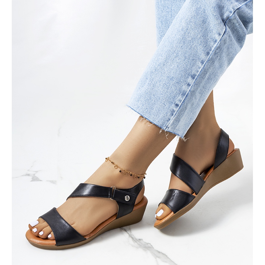Pieni 3,5 cm korkea kiila korostaa figuuria lisäämällä keveyttä ja charmia. Sandaaleissa on klassinen muotoilu, jotka sopivat hyvin erilaisiin tilanteisiin - arkisista tapaamisista kesäjuhliin. Suosittelemme valitsemaan suuremman koon, koska numerointi on pienempi.