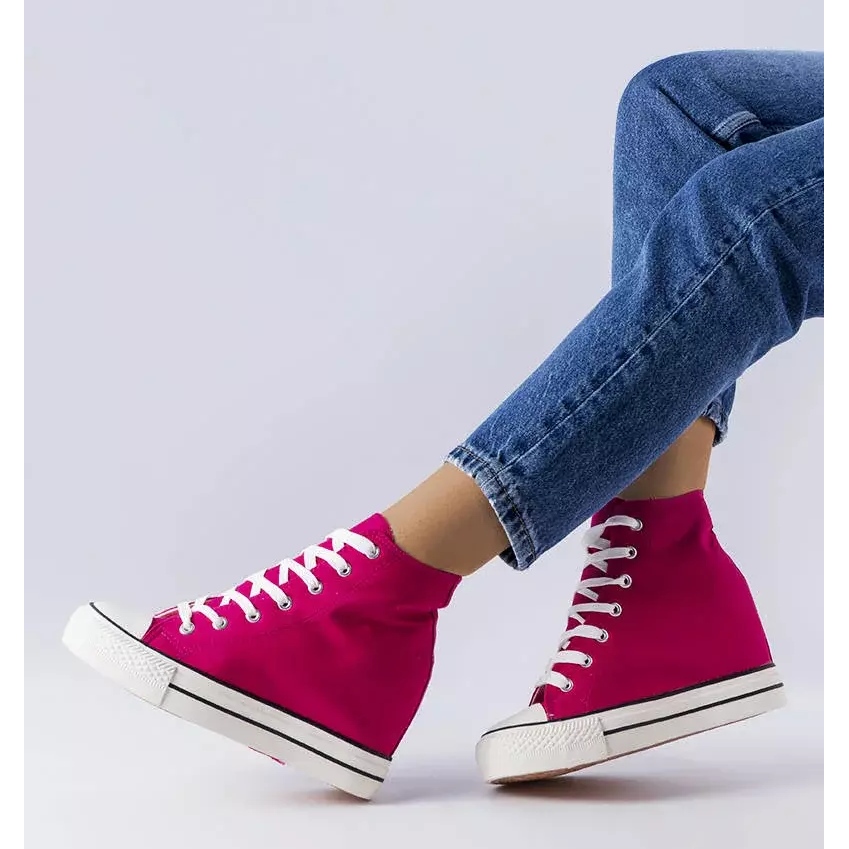 Esittelyssä vaaleanpunaiset Spaventa wedge lenkkarit valmistajalta BM, jotka ovat täydellinen yhdistelmä tyyliä ja mukavuutta. Nämä muodikkaat naisten kengät erottuvat intensiivisestä fuksiaväristä, joka lisää elämää mihin tahansa tyyliin.