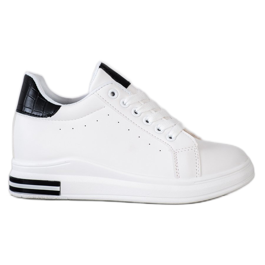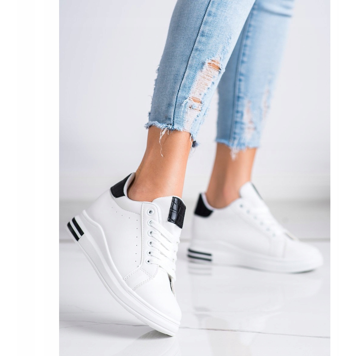 Piilotetun 5 senttimetrin kiilan ansiosta saat muutaman senttimetrin korkeutta, mikä korostaa vartaloasi mukavuudesta tinkimättä. Valkoiset lenkkarit mustilla inserteillä sopivat täydellisesti nykytrendeihin, joten voit yhdistää ne helposti erilaisiin vaatteisiin - farkuista ilmaviin mekkoihin.