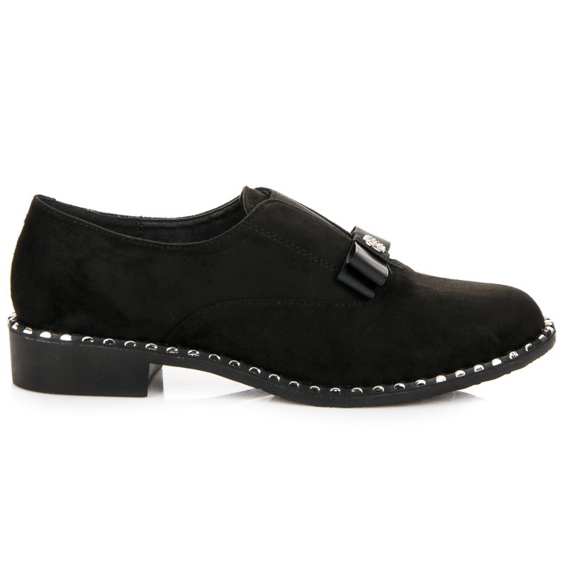 Mustan värin ja yksinkertaisen, kuviottoman muotoilun ansiosta nämä kengät sopivat täydellisesti moniin tyyleihin - sekä arkeen että muodollisempiin tilaisuuksiin. Rusetti on viehättävä yksityiskohta, joka lisää naisellista charmia.