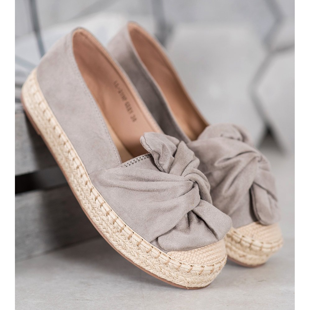 3 cm korkea alusta lisää hienovaraista lisäystä samalla, kun se korostaa siluetin eleganssia. Pyöreä kärki ja koristerusetti puolestaan ovat yksityiskohtia, jotka antavat espadrilleille ainutlaatuisen luonteen.