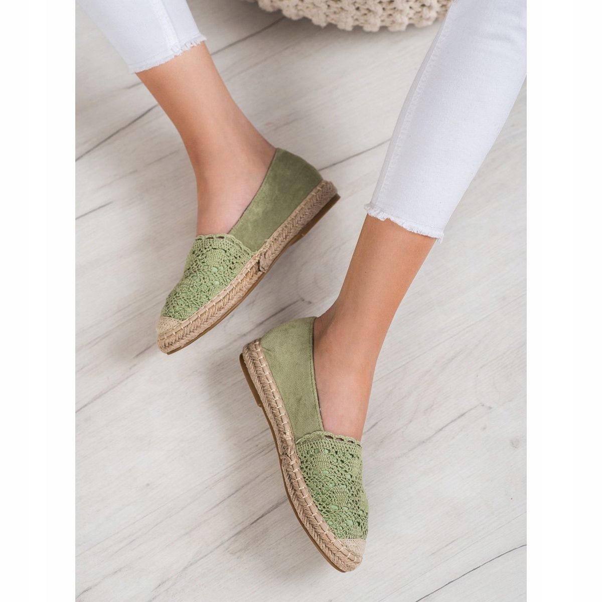 Pienet Swan Suede espadrillit vihreällä pitsillä ovat täydellinen valinta kevät- ja kesäpäiviin. Näissä ainutlaatuisissa kengissä yhdistyvät eleganssi ja mukavuus, mikä tekee niistä täydelliset jokapäiväiseen muotoiluun. Ne on valmistettu korkealaatuisimmista materiaaleista, mukaan lukien mokkanahka, ja ne herättävät huomion herkällä, vaalealla vihreällä sävyllä, joka elävöittää mitä tahansa vaatekaappia.
