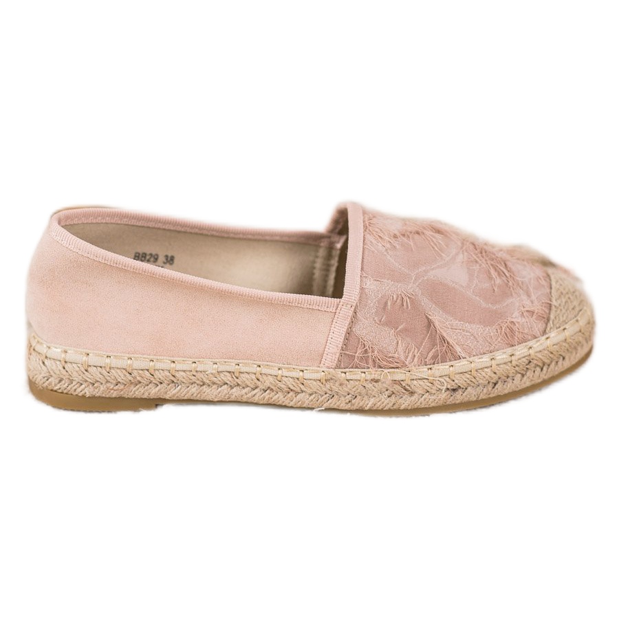 Espadrillit on suunniteltu naisille, ja ne on valmistettu korkealaatuisista materiaaleista - mokkanahajäljitelmä yhdistettynä tekstiilisisustukseen takaa mukavuuden ja tyylin. Hauskan vaaleanpunaisen värin ansiosta voit yhdistää ne helposti kesämekkoihin, shortseihin tai ilmaviin hameisiin. Pehmeä, sisäänrakennettu kantapää tarjoaa vakautta ja pyöreä kärki lisää eleganssia.