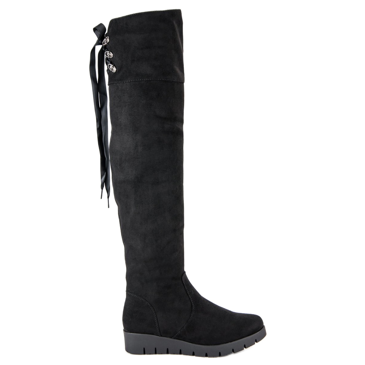 Polven yläpuolelle (54-55 cm) ulottuva korkea päällinen painaa kauniisti jalkaa, ja herkkä 3 cm kiila saa pohkeen näyttämään hoikemmalta. Pehmeän turkiseristyksen ansiosta nämä saappaat pitävät sinut lämpimänä jopa kylmimpinä päivinä. Kätevä vetoketjun ja nauhoituksen yhdistävä kiinnitys helpottaa pukemista ja säätämistä jalkaan.