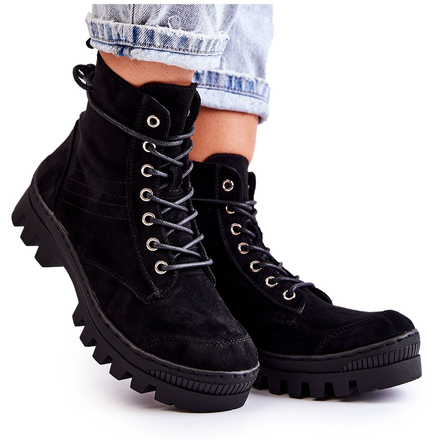 Yksityiskohdat: S.Barski Suede Trapper-nilkkurit mustilla tikkauksilla musta