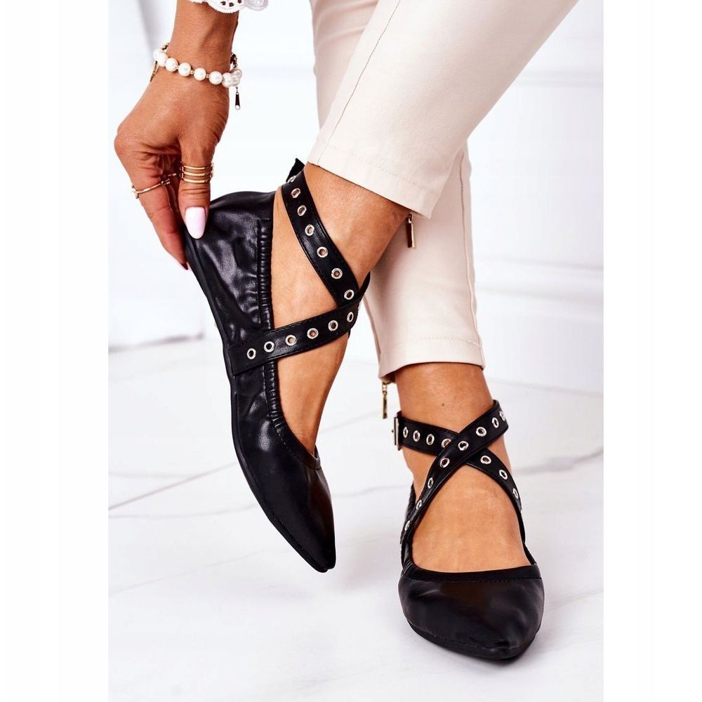 LU BOO Taitellut nahkaiset Lu Boo -baleriinit musta