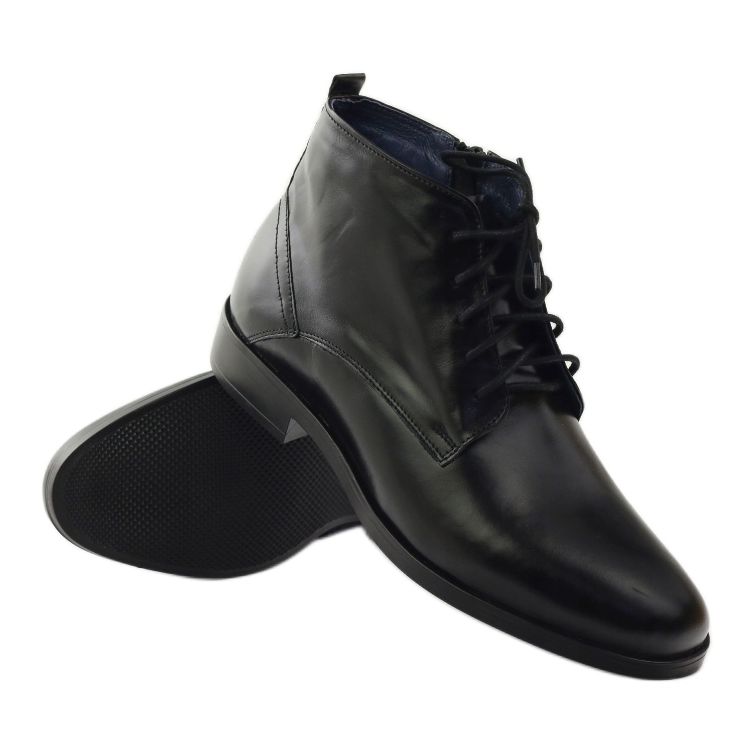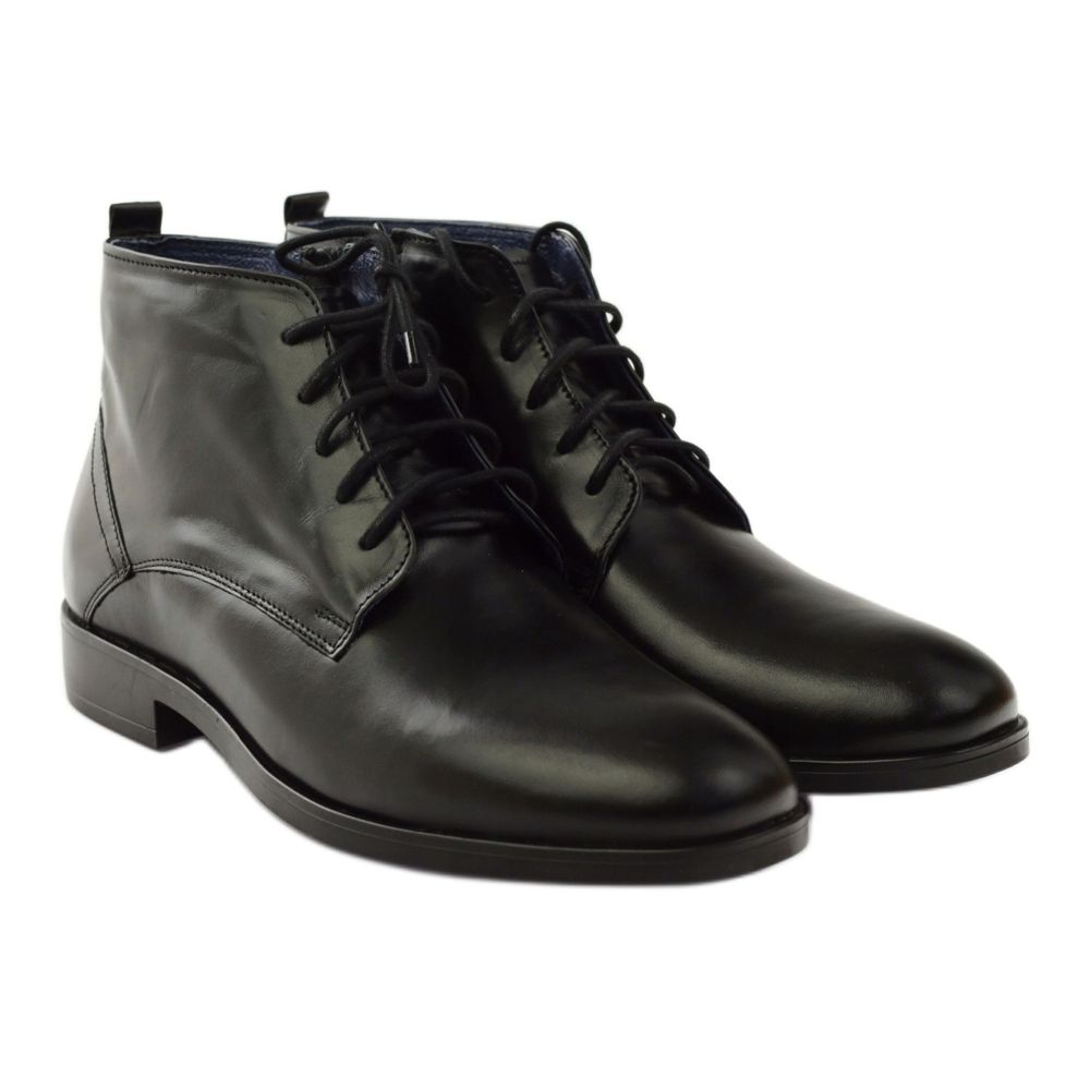Mustat vetoketjulliset Nikopol 663 talvisaappaat ovat täydellinen valinta miehille, jotka arvostavat mukavuutta ja tyyliä vaikeissa sääolosuhteissa. Nämä saappaat on valmistettu kokonaan luonnollisesta nahasta, ja niille on ominaista jalo viimeistely, mikä tekee niistä paitsi erittäin esteettisiä myös kestäviä.