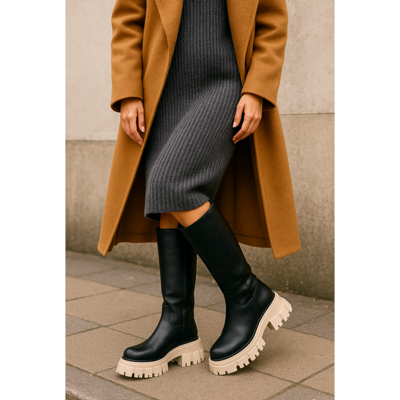 Massiiviset pohjat ovat talvella 2025 ehdoton osuma! Saappaat paksulla, traktorin pohjalla ei vain lisää senttimetrejä korkeita, vaan myös varmistavat stabiilisuuden liukkailla pinnoilla. Tämä suuntaus sopii täydellisesti Gorpcoren estetiikkaan yhdistämällä toiminnallisuuden kaupunkityyliin. Valitse mallit, joissa on kontrastinen pohja - mustat saappaat, joissa on valkoinen tai beige -pohja, luo mielenkiintoisen visuaalisen vaikutuksen. Nämä kengät ovat täydellisiä yhdessä ylisuurten takkien ja villamekkojen kanssa.