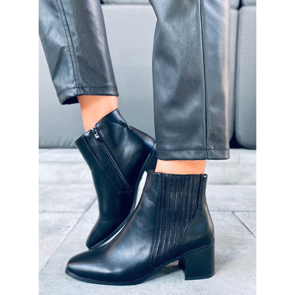 Tama Black korkeakorkoiset nilkkurit ovat täydellinen valinta naisille, jotka arvostavat klassisen ja modernin tyylin yhdistelmää. Nämä laadukkaasta ekologisesta nahasta valmistetut nilkkurit ovat elegantti musta väri ja neliömäiset varpaat, jotka antavat niille ainutlaatuisen luonteen. Leveä 6 cm korkea kantapää takaa vakauden ja mukavuuden jokapäiväisessä toiminnassa, ja Chelsea-saappaita muistuttava kumiosa lisää muodikkaan aksentin.